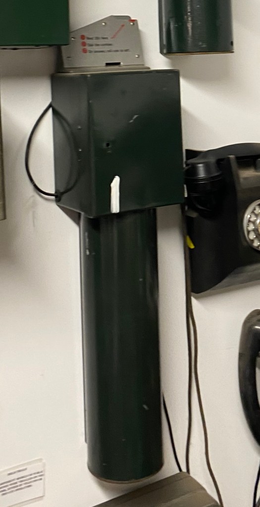 | BARREL CARCASE WITH ASSOCIATED HANDSET: In addition to the fixed transmitter and bell receiver varieties, another well known variation in use in major: pay stations was that which utilised a ‘barrel’ carcass with blank door, in association with a table telephone. Although this variation was used as early as the 1930’s it was not until the early 1960 1 s when bell receivers and solid back transmitters were in short supply, that these combinations were used :n quantity. Earliest examples used a ‘pyramid’ 162 type table set (Fig.11) progressing through the introduction of 300, 400 and 800 table sets. Figs. 11 and 12 feature automatic unit fee mechanisms (short and long barrels) with 52 and 300 type table telephones – two pence operation: These public telephones were usually used on both type cabinets (see Fig.1 Public Telephone Cabinets) in Post Offices. Other locations, especially on private property, were specially built as in Fig.20. Source- (with thanks to) History of the telephone in New South Wales / by Jim Bateman [Croydon, N.S.W.] : J. Bateman, 1980 ISBN: 0959478701 |