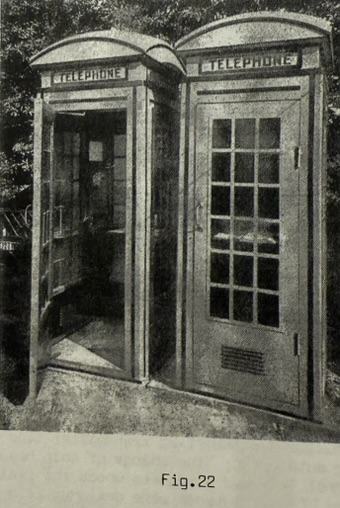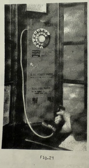 | CORNER TYPE PUBLIC TELEPHONE: In 1940 in conjunction with the introduction of a new telephone cabinets (see Fig. 6 P.T. Cabinets) which had glass on three sides and a glass door, a new instrument was designed for corner mounting (Fig.21) in this particular cabinet. The local call instrument was finished in vitreous enamel for resilience and featured an enlarged dial ring which formed part of the case, and an enlarged coin chamber to overcome past faults associated with overflowing coin receptacle. The instrument also featured a handset with flexible metal cord. ![]() This public telephone along with its associated cabinet, although used in N.S.W. between 1939 and 1945 was quickly discontinued. The cabinet was based on the British Post Office pattern but unlike the British cabinet which was made of concrete and later cast iron, it was decided that the Australian model would be built of sheet steel, with hollow walls, which proved disasterous in our climate. Unfortunately the specially designed and in many respects quite advanced instrument was also abandoned. ![]() No obvious reason for this instruments discontinuance has been discovered. The instrument itself was known as No.1 Auto Wall, and it may have been that its adaptability to tarrif change and inadaquate protection from vandalism caused it to be phased out so quickly. The nature of the exchange network of the day may also have presented problems. In any case a clear decision seems to have been made in favour of the Variable Tariff (or Long Tom as it was sometimes known), which seems a pity in view of its obviously advanced design and additional features. |