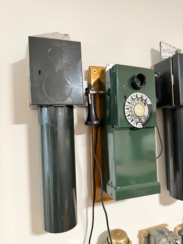 | AUTOMATIC FIXED UNIT FEE OPERATION: By the late 1920s the momentum of establishing automatic exchanges had necessitated the design of a local call telephone which did not require operator assistance. What occurred was the adoption of a universal design which incorporated a coin receptacle, very much like the original shapes, with a housing at the top containing the circuitry. This top compartment was fitted with a switch hook and bell receiver, dial and transmitter being fixed into the face of the compartment door, which opened for easy maintenance. The bottom coin compartment which held a removable coin tin also aped the shapes of the earlier coin receptacles. Fig.6 depicts the oblong as opposed to the round version, and Fig.7 illustrates the automatic fixed unit fee mechanism. HOW THE MECHANISM WORKED: When a line potential reversal was received on ‘called subscriber answer’, a polarised relay operated preventing conversation until the user inserted two pennies. These ran halfway down the coinway where they were held by a roller and spring which operated to short circuit the relay, allowing conversation to proceed. When the receiver was restored the switch hook mechanically released the roller which allowed the pennies to pass into the coin tin. The two penny coin head and layout of the mechanism could not be adapted to accept a change in tariff, it was restricted to one or two penny operation. Source- (with thanks to) History of the telephone in New South Wales / by Jim Bateman [Croydon, N.S.W.] : J. Bateman, 1980 ISBN: 0959478701 |