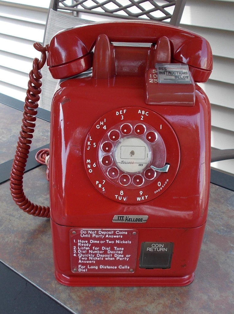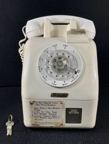 Above- KELLOGG K-581 as used in the USA. The KELLOGG K-581 payphone (or ITT Kellogg K-581) is a vintage, heavy-duty table-top pay station manufactured in the early 1960s, notably around 1962, often in collaboration with Tamura Electric Works Ltd. in Japan. These phones are now primarily sought after as collectibles or for restoration due to their classic, robust design.