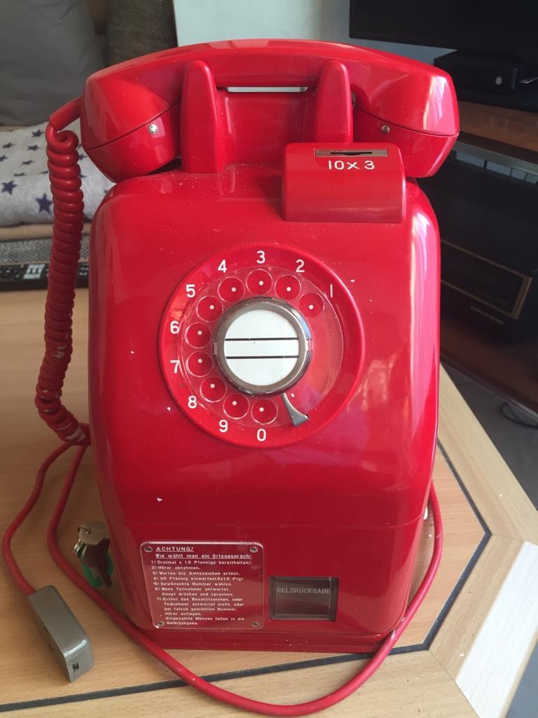 | Below-Tamura-payphone similar to the Australian Redphones produced in Japan, made for use in Germany. The coins are used was 10.- Pfennig. The phone need 3 coins to make a local-call. During the call there was no time limit. The lock is similar to the Australian type. |