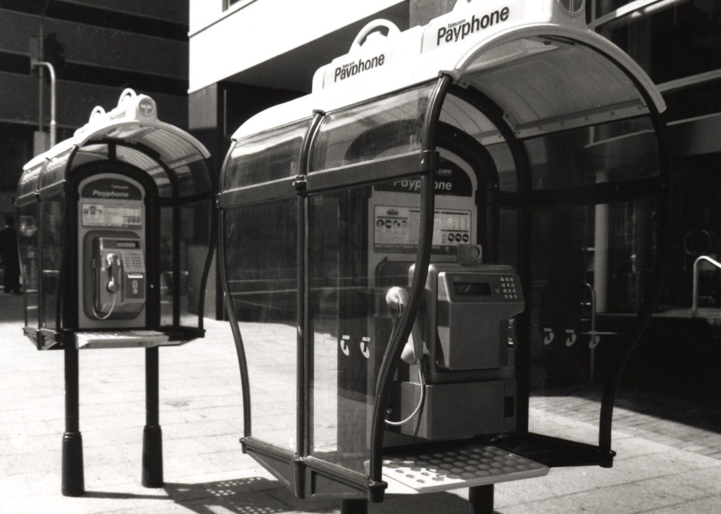| The iconic aluminium Telstra payphone booth was introduced in 1982, jointly commissioned by Telstra and the City of Sydney. It was designed by Darrel Conybeare and William Morrison of the architectural firm CM+ and manufactured by Street Furniture Australia. This design became the standard across Australia for head box public payphones . The booths were manufactured by Street Furniture Australia, a company established in 1986 by Conybeare and Morrison to produce urban furniture. This venture allowed them to oversee the entire process from design to production, ensuring quality and consistency. |