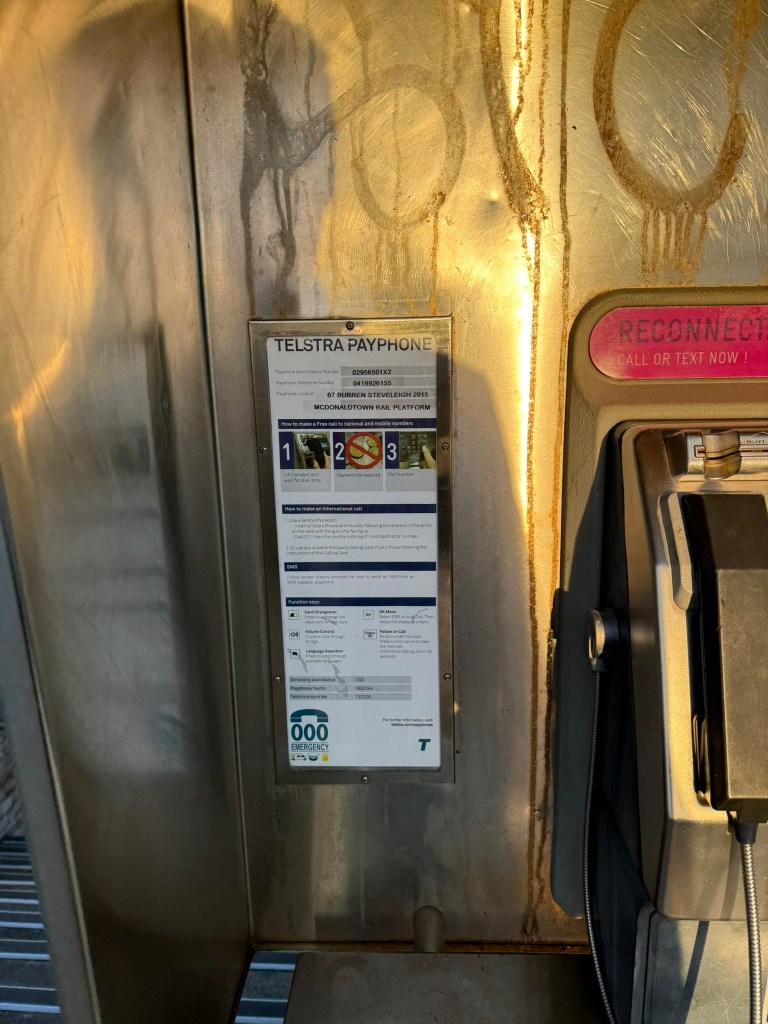 Name Vandal proof SS enclosure Date 2015 Manufacturer Telstra Usage Public call box Notes Used in sheltered Transport locations Further notes