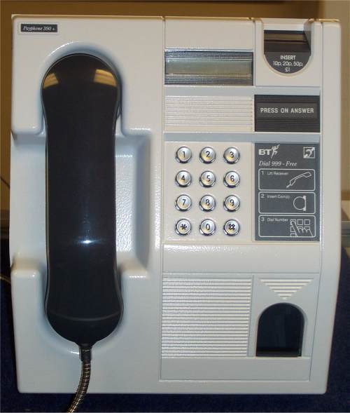 | Payphone 390+ The Payphone 390+ was a British Telecom wall-mounted public payphone introduced in the mid-1990s, designed for high-traffic locations like hospitals, conference centers, and large businesses. Manufactured by Landis & Gyr, it was an enhanced version of the earlier Payphone 290, featuring improved security with a metal keypad, casing, and handset cord to resist vandalism. It accepted 10p, 20p, 50p, and £1 coins and had a large cashbox capacity of up to £135. The phone came in Meter Pulsed and Self-Contained models, offering flexible tariff settings and compatibility with different billing systems. It included advanced features such as abbreviated dialing for up to 10 numbers, permanent emergency call access, operator and directory enquiries barring, next call facility, last number redial, and a display showing true credit balance. The Payphone 390+ was gradually phased out in the early 2000s as newer digital and card-operated payphones became standard. Payphone 490+ The Payphone 490+ was introduced by British Telecom in 1992 as a wall-mounted public payphone that accepted both coins and credit cards. Manufactured by Landis & Gyr, it featured a card swipe mechanism compatible with BT Phonecards, Chargecards, and major credit cards, alongside accepting 10p, 20p, 50p, and £1 coins, with unused coins returned to the user. The phone had a digital display showing remaining call balance and included memory functions such as a 10-number speed dial and last number redial. It was also equipped with a V.22 modem to allow for remote diagnostics and maintenance. The 490+ was housed in a robust casing, with the card reader integrated between the upper casing and the cash box. Widely deployed across public locations in the UK during the 1990s, it was gradually phased out in the early 2000s as BT moved toward newer digital and card-operated payphone technologies. |