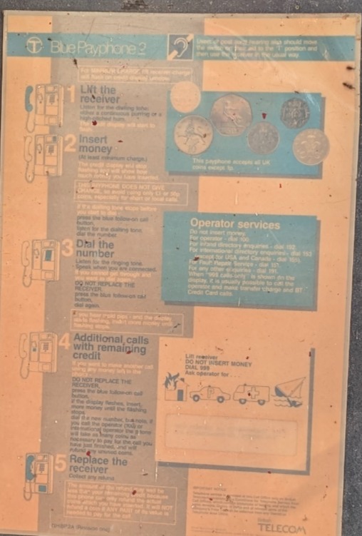 | CT24- Payphone 600 – Blue Payphone 2 The Payphone 600, officially designated as CT No. 24A (Type: CT24), was introduced by British Telecom in 1983 as a robust, self-contained, microprocessor-controlled payphone. Manufactured by Landis & Gyr, it was developed to replace earlier mechanical coin-operated models, bringing in more advanced technology suitable for high-use public locations. It accepted a range of coins—2p, 5p, 10p, 20p, 50p, and £1—with capacity for up to 15 coins to be inserted in advance, and a total cashbox capacity of around £150. The unit featured a digital display showing the minimum charge, remaining credit, and refund due, with unused coins returned automatically when the handset was replaced. Constructed from stainless or mild steel with a large lockable cash compartment, it required a Subscriber Meter Pulsing (SMP) service and a reliable earth connection. Programming and tariff adjustments were carried out using a handheld Tester 297A. It supported local, national, international, emergency, and operator-assisted calls. The Payphone 600 remained widely used throughout the 1980s and 1990s, particularly in unsupervised public environments. BLUE PAYPHONE 2 This payphone incorporates all the features of Blue Payphone 1, such as:- Easy local STD and international dialing. Pressure-free coin slot with no interruptions to speech if coins are inserted during a call. Follow on calls with remaining credit. Up to fifteen-coin insertion advance. Full visual display of minimum fee and Credit Remaining. “Cash Box Full’ sensor to help prevent coin jamming. Full operator service, including free 999 calls. Identification tone on incoming and operator connected calls. It will also take most denominations of coins: 2p, 5p, l0p, 20p, 50p and £1 coins. |