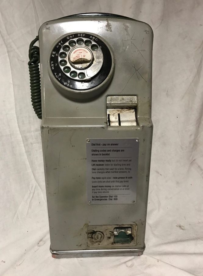| CT735 The CT No. 735 was a British Post Office (GPO) payphone introduced in the late 1960s as an upgraded Pay-on-Answer (POA) model designed for use in public telephone kiosks and some institutional settings like hospitals and hostels. It featured an integrated coin mechanism, rotary dial, and a more compact, vandal-resistant housing compared to earlier models such as the No. 705. The 735 was compatible with the UK’s pulse-dial telephone network and required specific exchange equipment to process coin signals. A portable version, the 735L, was developed for temporary installations in hospitals and remote facilities. Although primarily used throughout the UK in red K6 and K8 kiosks, limited exports occurred to other Commonwealth countries for use in British-built installations. The 735 replaced older coin box types like the No. 706 fitted with separate coin units and remained in service through the 1970s and into the 1980s. It was eventually discontinued and replaced by electronic push-button models and card-operated payphones that were easier to maintain and better suited to modern telecom systems. |