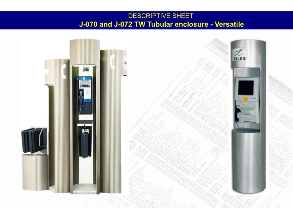 Name Tubular cabinets for exterior and interior use Date c. 1980 Manufacturer Industries Jaro Inc. Usage US Phone Booth Further notes