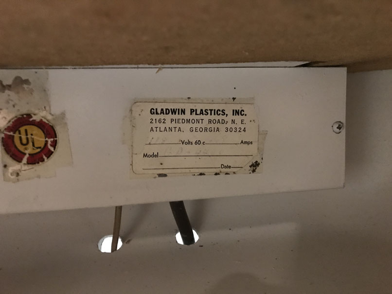| Manufacturer | MFG Co. Gladwin Plastics of Atlanta |